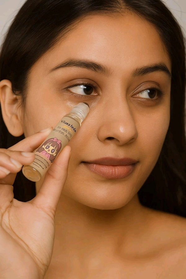 2. Apply a few drops of our serum to the under-eye area using the roller.